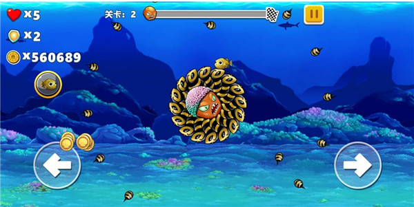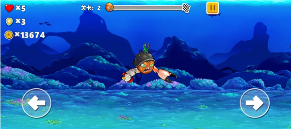 2.但关卡区分为水中及陆地,在水中时主角悬浮在画面中央,在陆地时则能在地面滚动。