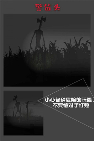 警笛头是一款恐怖跳跃的恐怖冒险游戏。游戏里,会有一个怪物追逐玩家,它有着两个警笛作为头,它是由艺术家特雷弗·亨德森创造。它以古怪的外表和它脑袋发出的声音而出名。它对人类有着强烈的敌意,它会用超声波杀死它的猎物,它可以听您的所有动作,但玩家可以隐藏和欺骗它,因此它将看不到玩家。整体的游戏环境都非常的暗黑可怕,突如其来的意外让人感到毛骨悚然,拿起武器保护好自己,这里不是死路一条,保持冷静才能救出自己。玩家需要收集生存的必须品,一边躲着它。游戏拥有着开发的地图,玩家可以到处探索,同时它也会寻找玩家。游戏里的场景都是在不断变化的,游戏的整体显得十分的阴森恐怖。今天给大家带来这款警笛头,感兴趣的朋友可以到本站下载。