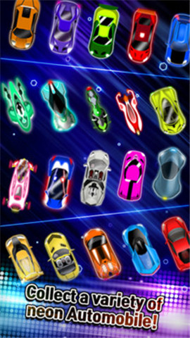 这是一款独特的休闲娱乐游戏,游戏采用彩色绘画艺术风格,用霓虹灯装饰酷炫的赛车,它在黑暗中看起来非常酷和华丽,游戏的玩法也很简单有趣,通过不断超越赛道上的玩家获得金币和积分奖励,您可以解锁新关卡和酷炫赛车。