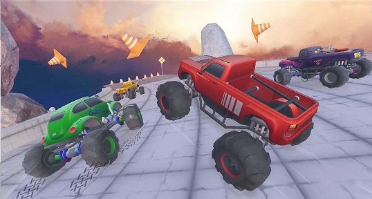 1、在这款怪物卡车驾驶和赛车中,体验在弯曲的道路上驾驶怪物卡车的优美风景和危险的桥梁。