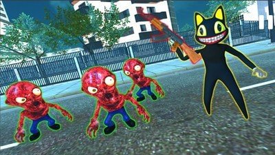可怕的卡通猫,因为僵尸将变得更加拥挤和危险!当死者升起时,不要奔跑!抓住枪支,按住扳机,永不释放!您只需站着不动,捍卫自己的职位,以抵御整个城市中成群的僵尸,将和平带回人类。