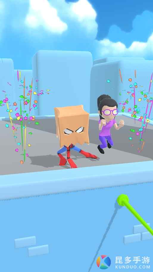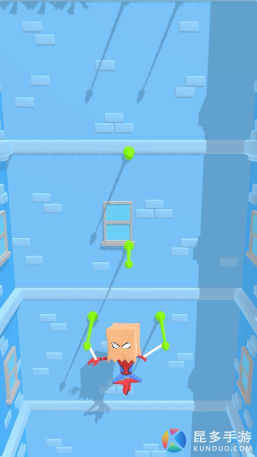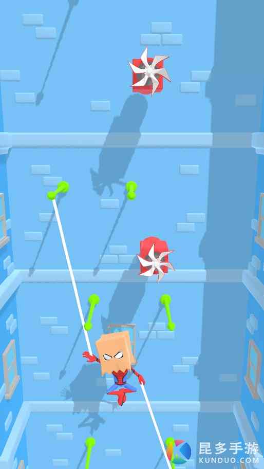 游戏通过点击操作,进入游戏后,点击最有利的攀爬点,释放蜘蛛丝向上攀爬,然后选择正确的角度抓住下一个攀爬点,躲避机关继续向上,直到楼顶。