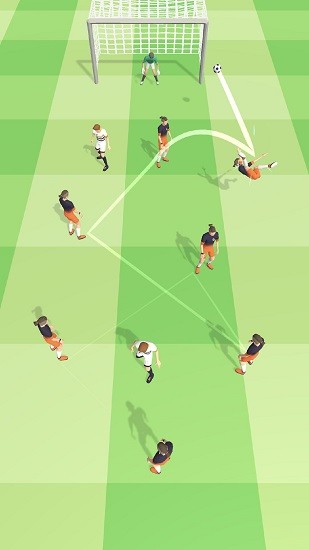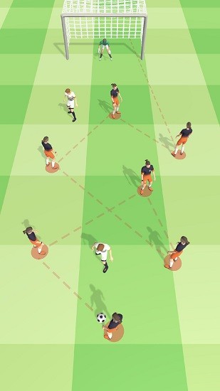 开始选择一个队伍以后,这个队伍的所有球员都归玩家指挥,并且玩家可以随意切换球员进行射门,传球并不需要过多的操作,只需要玩家旋转一下球员然后瞄准目标就可以了。传给队友时,球可能会弹在墙上,所以要把握好力度和技巧。