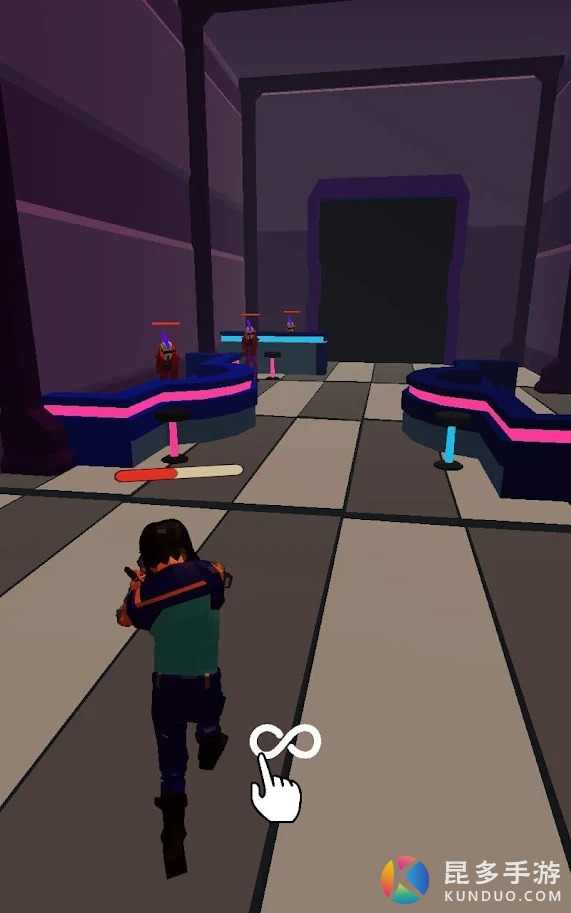 远处的敌人会自动开枪射击,但是要通过滑动屏幕进行瞄准。