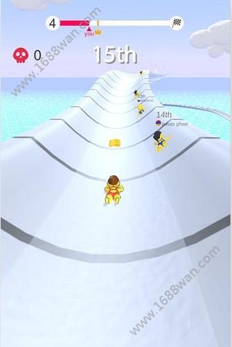 3、操控你的角色在水上滑梯上左右移动,在避开敌人攻击的同时赢得胜利。