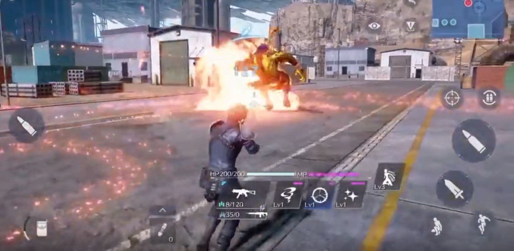 再来是地图和操作方面,游戏地图的大小比例不大,类似于《APEX》的地图大小,让玩家可以更快的享受战斗的节奏,而不是需要落地先去搜刮资源,其次就是射击手感方面,因为游戏采用了HP和MP两个能量槽的设定,其中HP定为200所以玩家并没有那么容易被瞬间击杀,但是魔神的攻击力非常高大概一套下来能有360多,不过玩家是可以像本篇一样进行躲避的,所以也让这款游戏更多的考验玩家的反应和操作,带来不一样的幻想吃鸡体验。