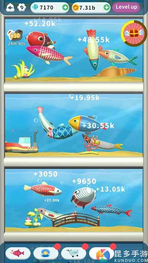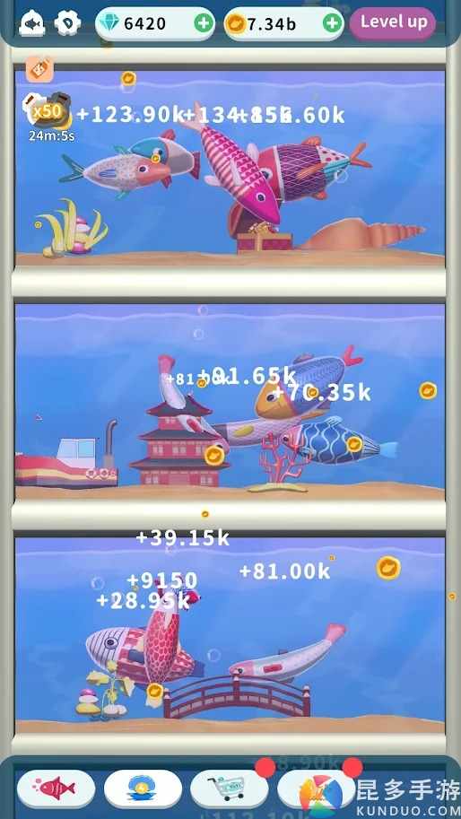 3、收集与养殖自己喜欢的鱼,获得大量金币;