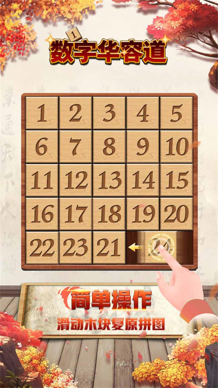 游戏介绍数字华容道,所有的数字都在一个正
