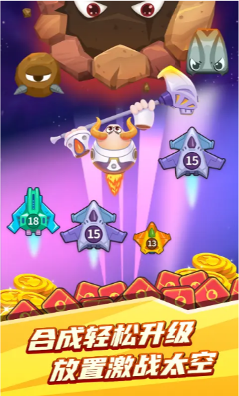 2.游戏的操作很简单。魔术全位置合成赛总是充满期待和惊喜。精美的卡通游戏场景中有各种各样的飞船供你解锁,以保卫你的家园。