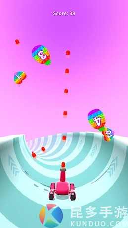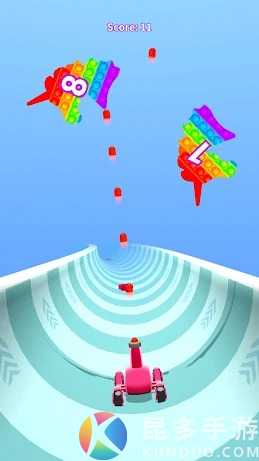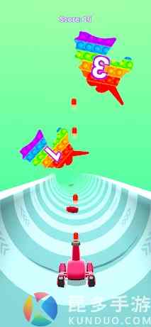按住游戏屏幕,在控制大炮的移动,可以收集界面上的倍数增加战斗力,但是也要避免游戏里的障碍以及空中的Pop-it。