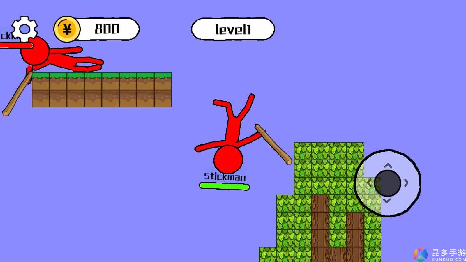 游戏开始后,只有一个方向键可以操作,所以你需要滑动方向键,通过控制火柴人的方向来战胜更多的敌人。