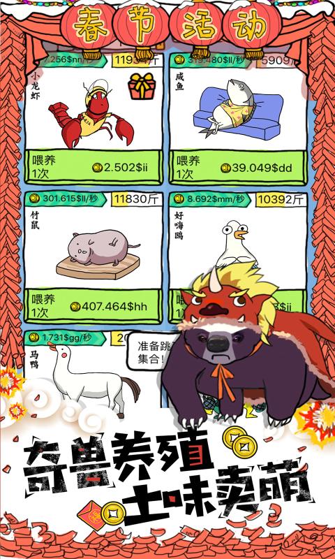 3、要想打造属于你的灵兽养殖帝国,你只有疯狂砸钱培育,够没更多品种,完成各种任务。