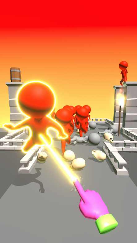 用你的手指和周围的物品摧毁敌人!如何一次消灭两个敌人?答案是用一个扔另一个。