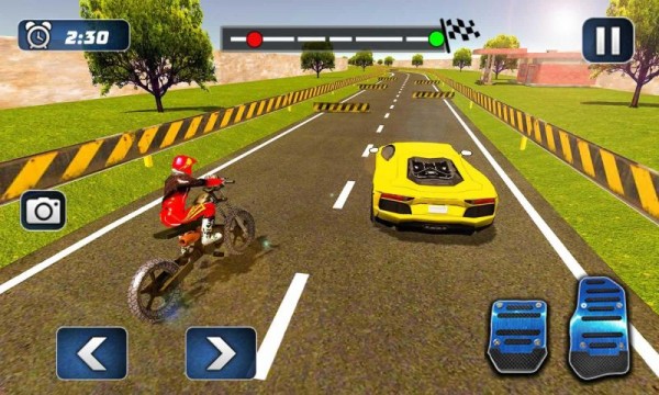 摩托车对决赛车是一款惊险刺激的驾驶竞速游