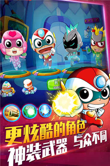 在游戏中,每一个开心宝贝都拥有着他们在动画中的特色变身,且所有的变身都有相应超人的特征,加上功能与外观各异的弹幕,给予你视觉上的炫酷无比的享受,体验到那种激血畅爽的打击快感。