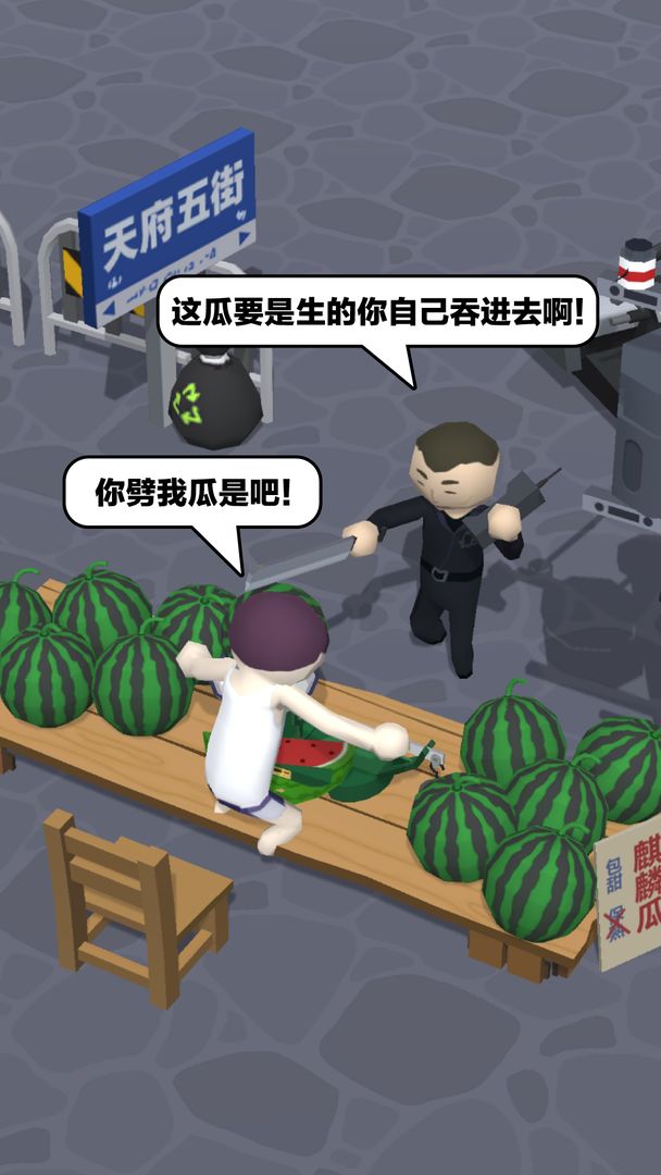 西瓜摊主大战买瓜人是一款脑洞巨大的动作游