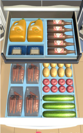 冰箱补货,你要在超市开业前对冰箱进行补货,还要排列整齐,如果不能正确的排列放置就会造成空间的浪费,或者不能填满货柜,所以你要观察货柜的体积和货物的要占的体积,根据货物的大小和数量,合理安排摆放位置,让它们整齐的呈现在客人的面前。