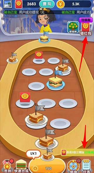 3、解锁更多新设备新菜谱,升级也会有红包福利!