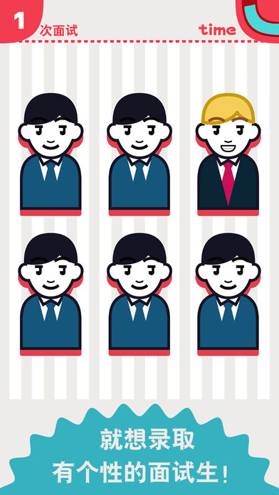 面试官是怎样炼成的,你是公司的面试官,你每天都需要面试很多的人,你要知道公司需要的人才是什么样的,公司需要的是个性鲜明的人,而你就需要在众多参加面试的人中找到那个不一样的人,伴随着面试次数的增多,你面试的人数也会不断的增多,同时面试时间也会随之变化,你需要在一定的时间内找到那个个性独特的人,才能够结束这次的面试。你会看到着六个人中,有一个和其他人不一样,那么那个人就是需要你录取的人没这个人就会是最终面试成功的人。当面试参与人数很多的时候,你就需要仔细的观察,找到众多面试人员中不一样的那个人。这就非常考验你的眼力和识别观察判断能力了。人员数量多的时候,区别不是很大只有你仔细的区分才行。对这款游戏感兴趣的各位玩家可以来我们号令手游网下载试玩一下哟。