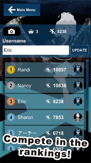 3.来自全国各地的排名列表和标题,各种多彩的关卡出现,解锁关卡场景。