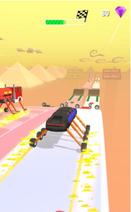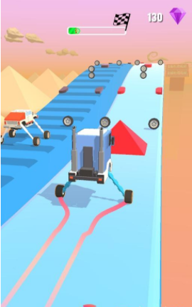 蜈蚣车比赛,将举办一场蜈蚣车比赛,给你带来不一样的赛车体验,开局给你一辆黑色的炫酷小车,点击屏幕开始行动,收集路径上的轮胎,每收集一对轮胎,你的小车会增长一部分,并且多长出一双“脚”,小车可以伸长通过这些脚来升高车身躲避障碍物到达终点。