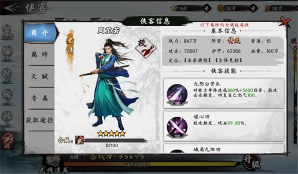 5、力职业侠客是首当其冲的前排侠客,在游戏中以防御能力和站场实力保证后排侠客不被敌人攻击。力职业侠客在战斗中,可以通过适当的打出先手控制技能削弱敌方,方便后排侠客给予敌人致命打击。