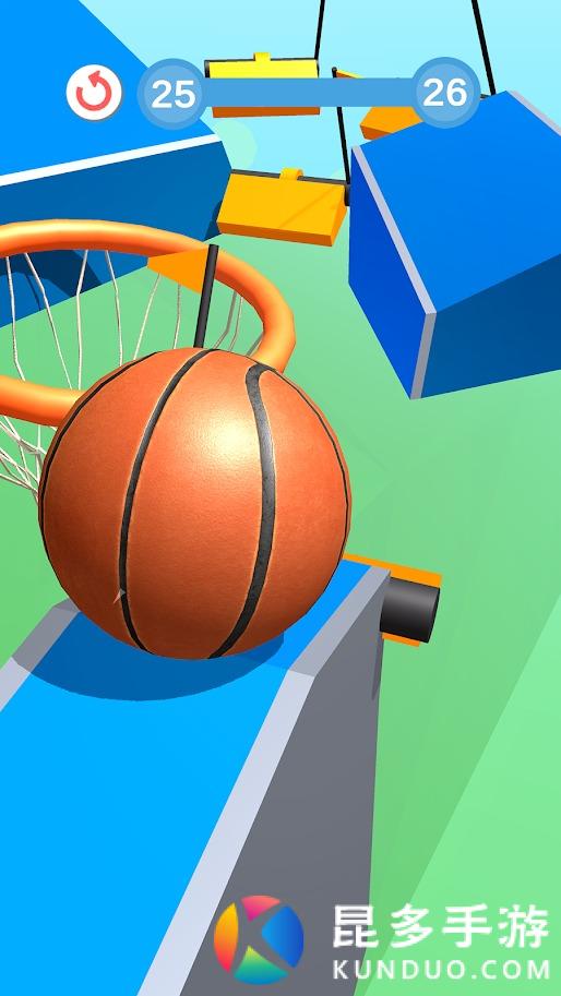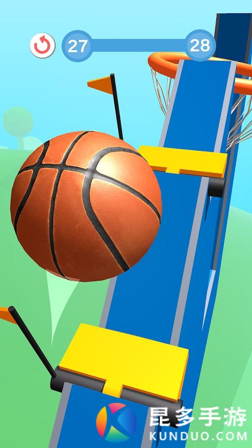 通过点击控制机关的弹射时机和力度,将篮球弹过障碍进入篮筐才能过关。