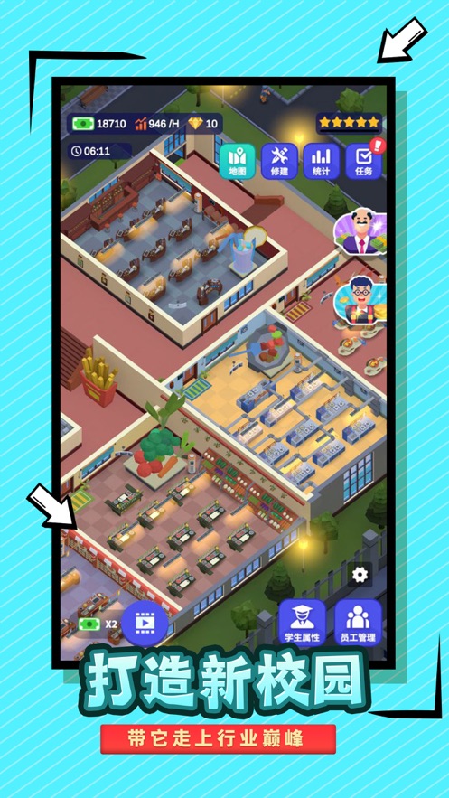 《我要当校长》是一款轻松超休闲放置类游戏,玩家在游戏中扮演一个校董的角色,一心拉投资搞建设,不断拓展学校的师资力量。吸引学生前来报道上课,让学生安心学习,考上大学从此走上人生巅峰!