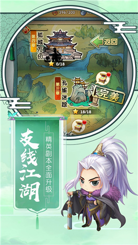 大掌门2是一款武侠风卡牌策略手游。大掌门2是我挺喜欢玩的一个游戏,如果说为什么的话,其实它的玩法跟普通的卡牌游戏差不了太多,都是最普通的那种,但是它够良心,而且它的画风我很喜欢,人物可爱不失美感,招式设计得也很不错,挺炫酷的。最满意的可能就是对于江湖前几章那种剧情互动了,真心希望大大们多多改善,在后面那些章也穿插一些,后面这种互动就很少了。人物,画风,很棒。关键是,古龙迷,无法抵抗。氪金,是为了迅速获取资源!那个侠客令,不是你氪金牛逼就能包揽的,哈哈!看到很多氪金大佬骂娘,我心甚慰!总而言之,这是一款好游戏,目前并没有发现类似生死格斗无限那种逼氪的活动。个人感受,这个游戏适合大部分类型的玩家,是个良心游戏!喜欢的朋友欢迎下载体验哦!