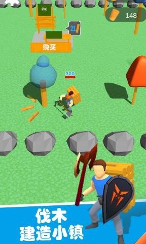 2、去往不同的场景之中去进行伐木,这样才可以去升级自己的防御;