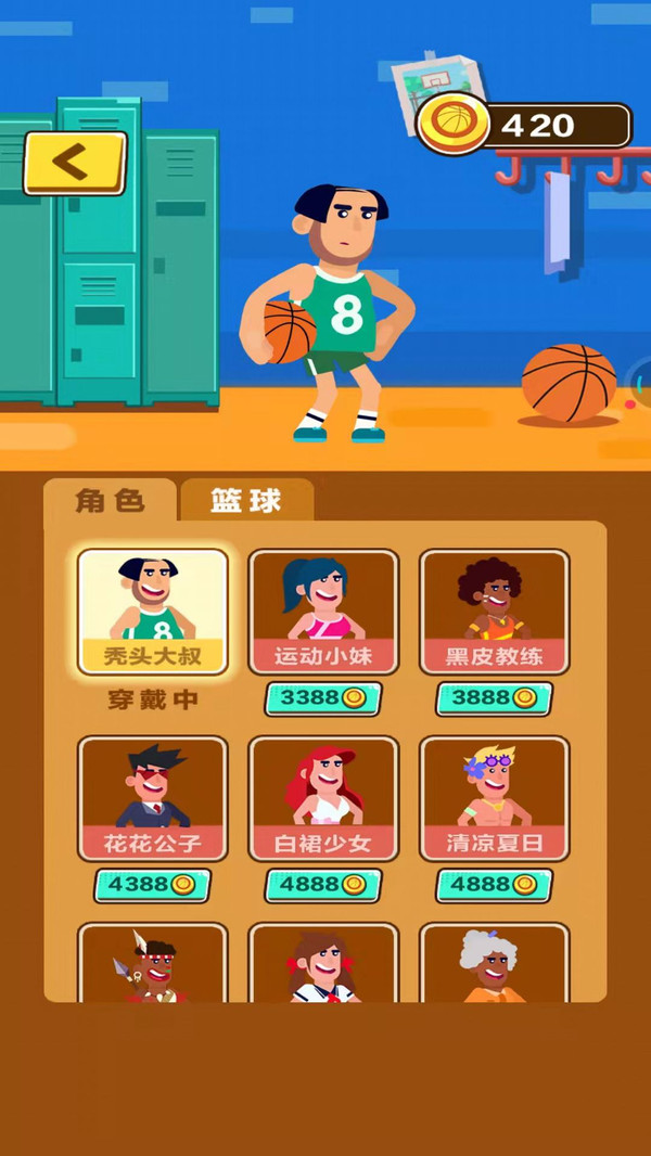 3.玩家可以用金币换取各种角色,以及被称为华丽篮球的特效。
