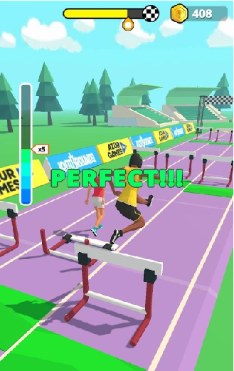 1、这是一场体育接力赛,运动开始之后,运动员会自动前进,只需要在运动员跑到绿色区域时点击屏幕即可,