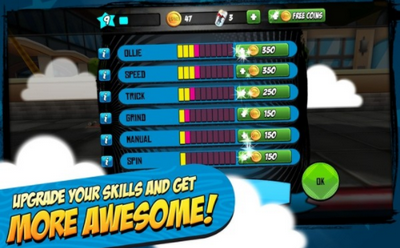 1,以滑板为主题的动作游戏,玩家在游戏中可以直接感受到滑板的体验,还可以用一系列的技巧完成具有挑战性的关卡。