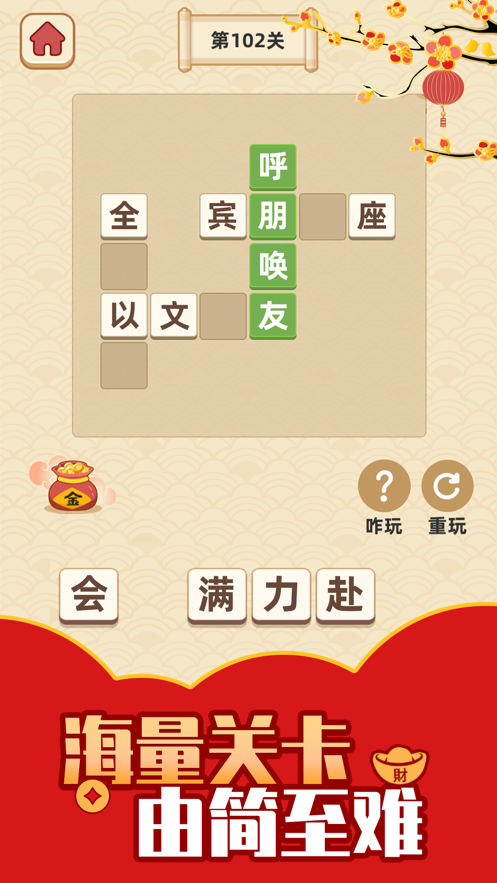 成语黄金屋至尊版全新的版本即将上线,获得更多的金币奖励吧,上线就领取更多的金币,闯过机关就可以积累更多道具金币来兑换红包吧,全新版本极速的提取,简单的几步也不用看广告就可以全部提取到账了呢。
