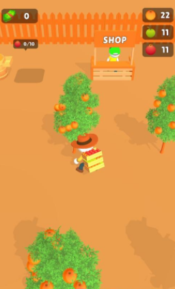 你有一个小果园,每天靠着收水果榨汁赚钱,纯天然无添加剂的水果汁卖的很火爆,所以你必须每天都来采集水果用来榨汁,而且随着大众的需求越来越高,你在自己的果园中又添加了几种水果进行种植,随之而来的问题是你的背包容量不够大,每次背的水果有限,还要多跑几趟,去商店那里升级新包,帮助你快速赚钱。