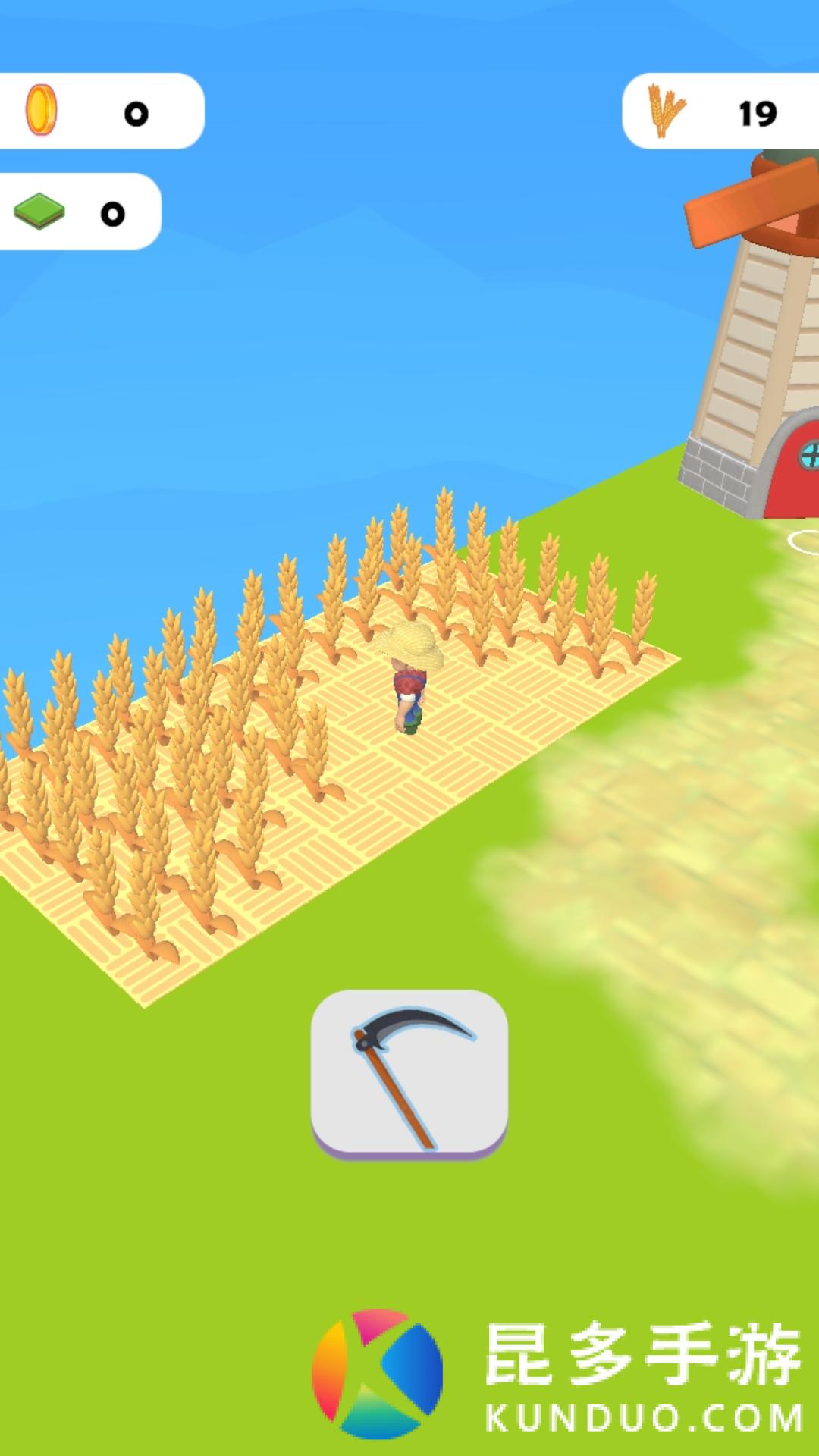 到达麦田时,点击镰刀,并移动人物,人物会收集小麦哦。
