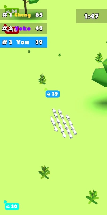 上下左右滑动屏幕控制动物的移动方向,获取食物让自己的数量增多,吞噬其他动物成为百兽之王,解锁更多的动物,让自己越来越凶猛。