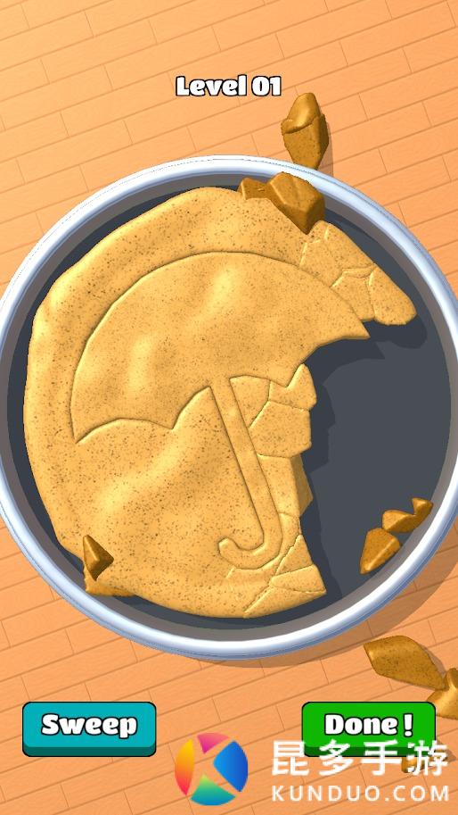 点击开始游戏,然后通过点击或长按屏幕清除糖饼图案外围的糖,把图案完美的抠出来,然后点击“DONE”等待验收,如果不成功必死无疑,如果成功继续挑战。