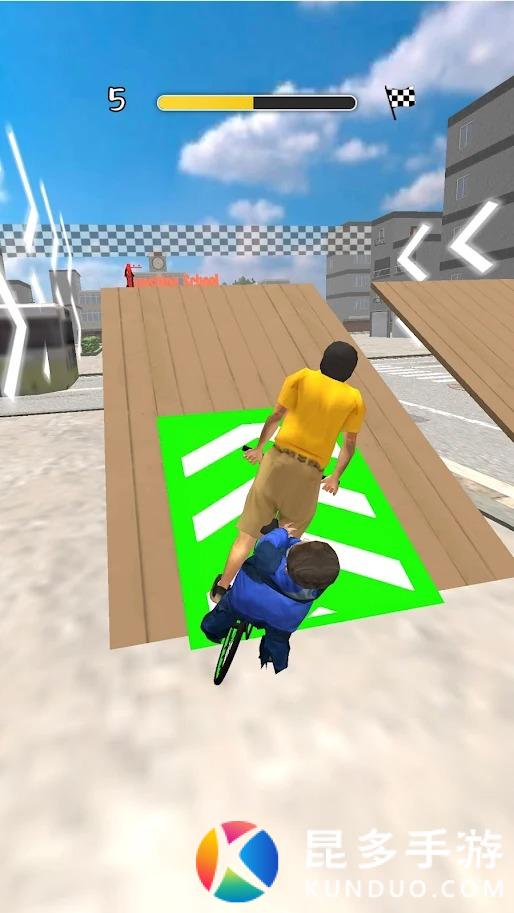 左右滑动屏幕就能控制自行车的左右移动,以更好的躲避各种障碍与危险,顺利到达学校就能闯关成功了。