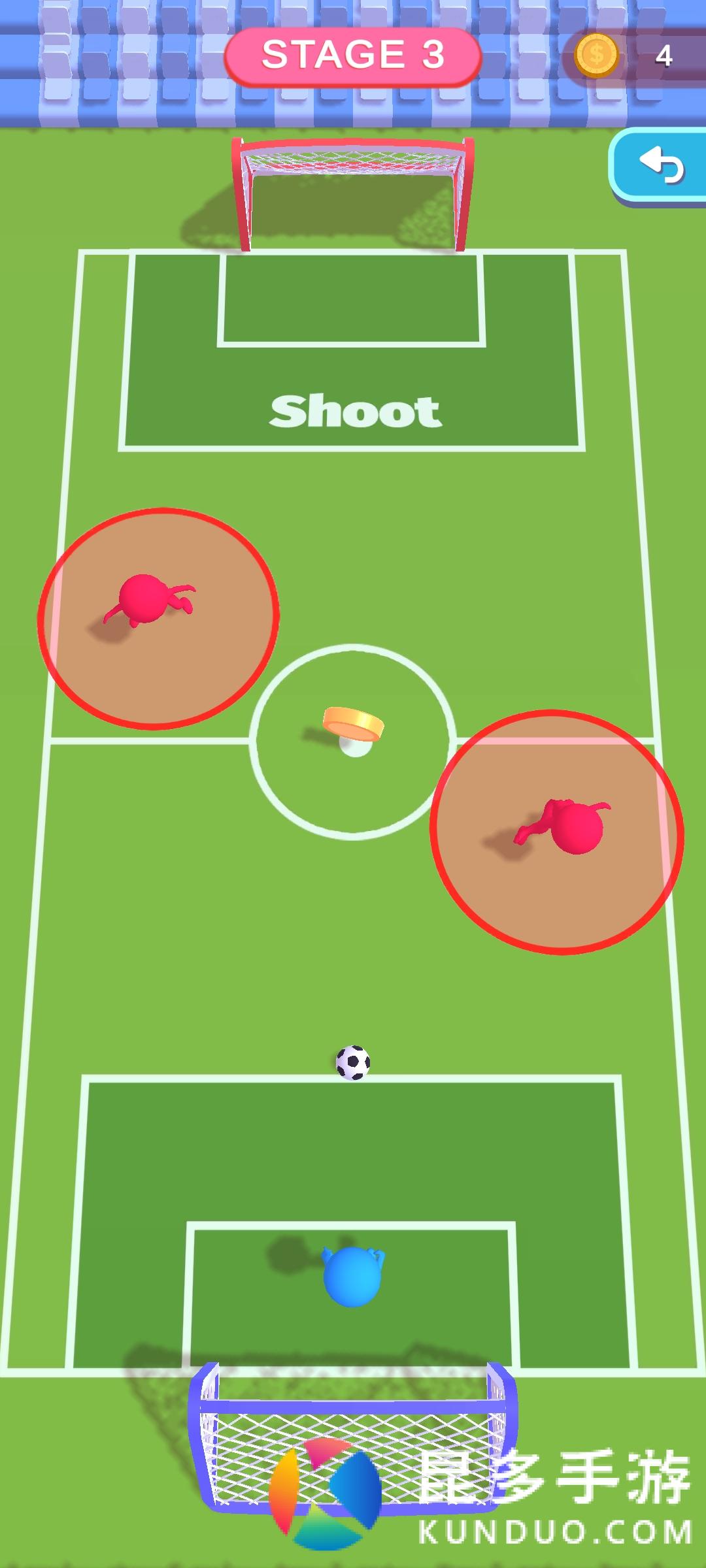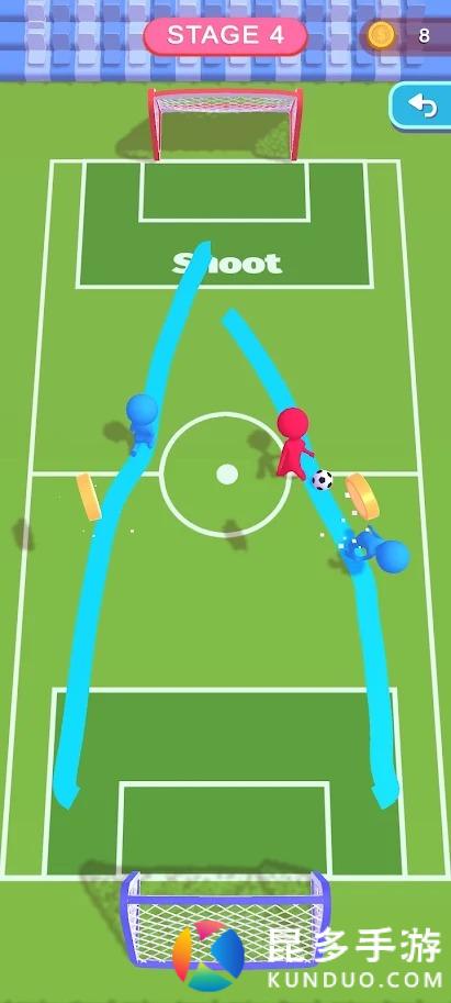 在地上任意画线,绕过对手,吃掉金币,并将球踢入球门,注意线没有长短但是只能一气合成中间不能断掉。