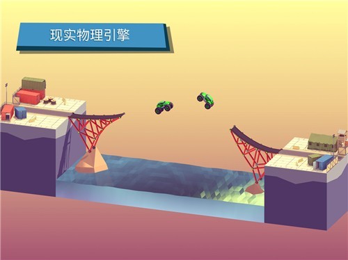 创建和设计自己梦想的桥梁,让汽车顺利的通过,当然,你也可以让他掉入水中!
