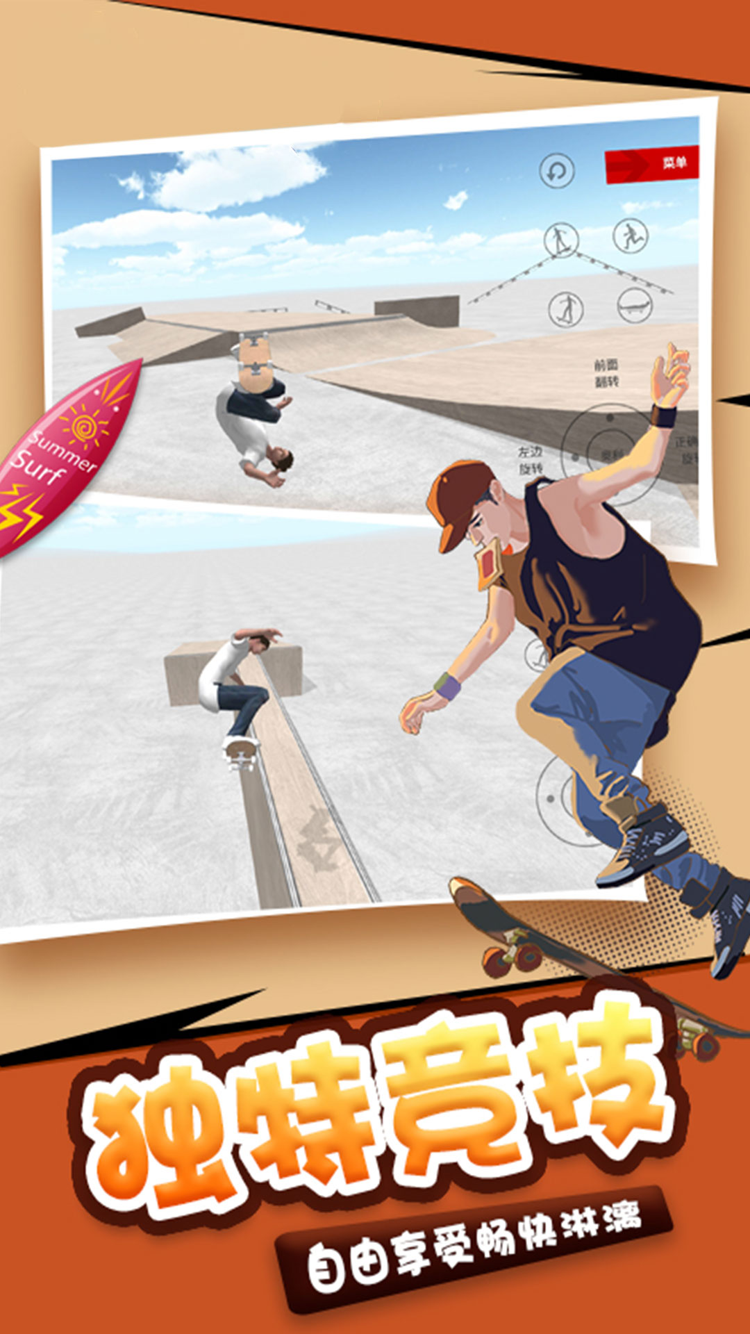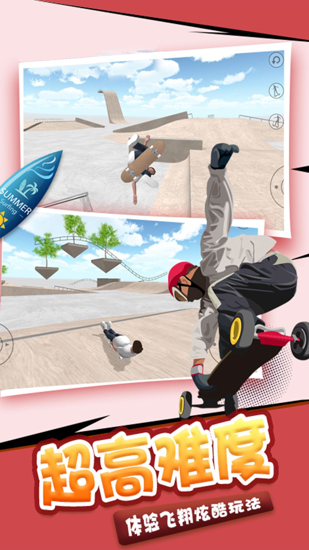 2、这样的滑板玩法都是很难的,但是带来的体验刺激感也更多。