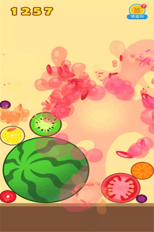 2、相同的说过接触会合成一个更大的水果,最大的就是大西瓜,玩法类似2048;
