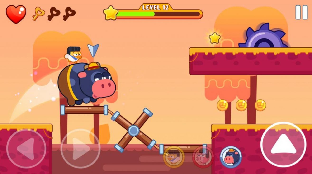 2、小猪冒险、物体移动、在移动平台上穿越、丛林冒险、隐藏隧道、寻找秘密、星星收集和无尽的跳跃任务以爱之名。