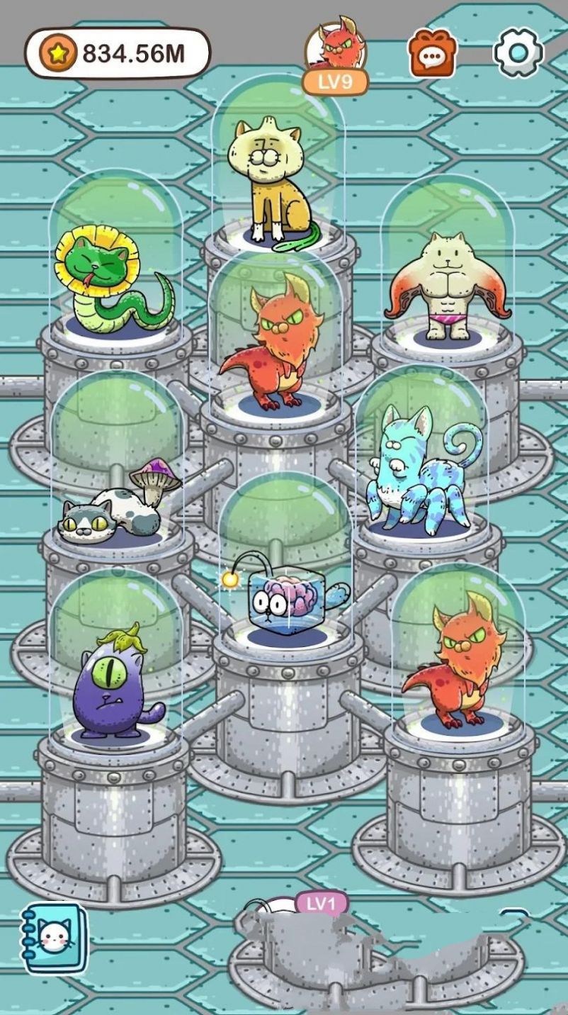 1:超多不同的猫咪等你来自由的合成,每一种猫咪都可以给你带来不同的收益。