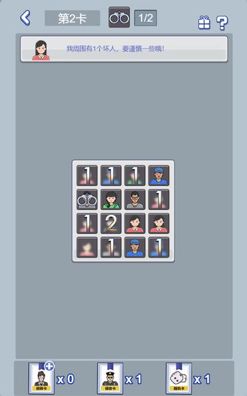 2、利用有限的手铐,找到并标记出所有的坏人,则游戏获胜。