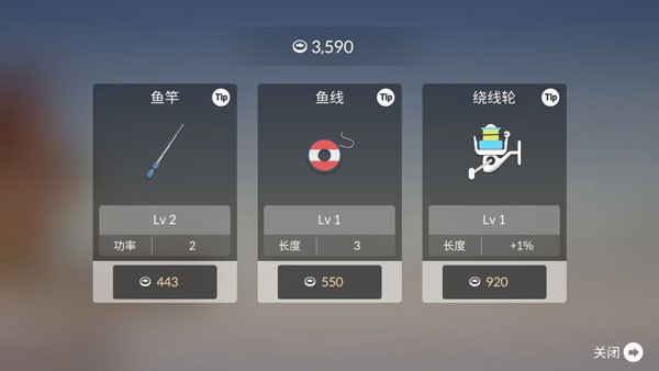 3.我们需要提高自己的渔具级别,这样才能够钓到更多稀有的鱼品种,还有深海中神秘的大型鱼类。