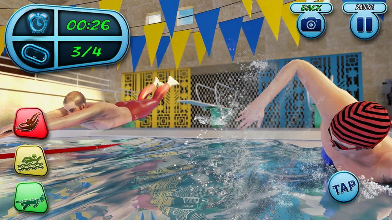 游泳比赛模拟器游戏:运动员可以享受一场又一场的游泳比赛,在泳池中游泳,有效地与对手争夺第一名,刺激竞争过程,努力发挥自己的优秀行动能力,超越一切其他人员,成为非凡的赢家。