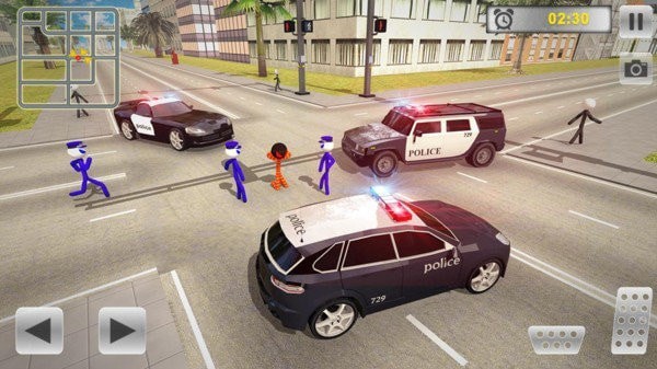 1、游戏中的主角是火柴人,他们将穿上警察的制服一起押解犯人。