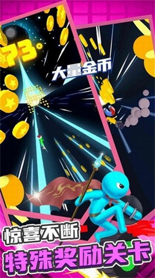 1、不受时间、地点和网络的限制,真正做到随时随地想玩就玩,游戏采用了非常简单的画风,突出主角火柴人。
